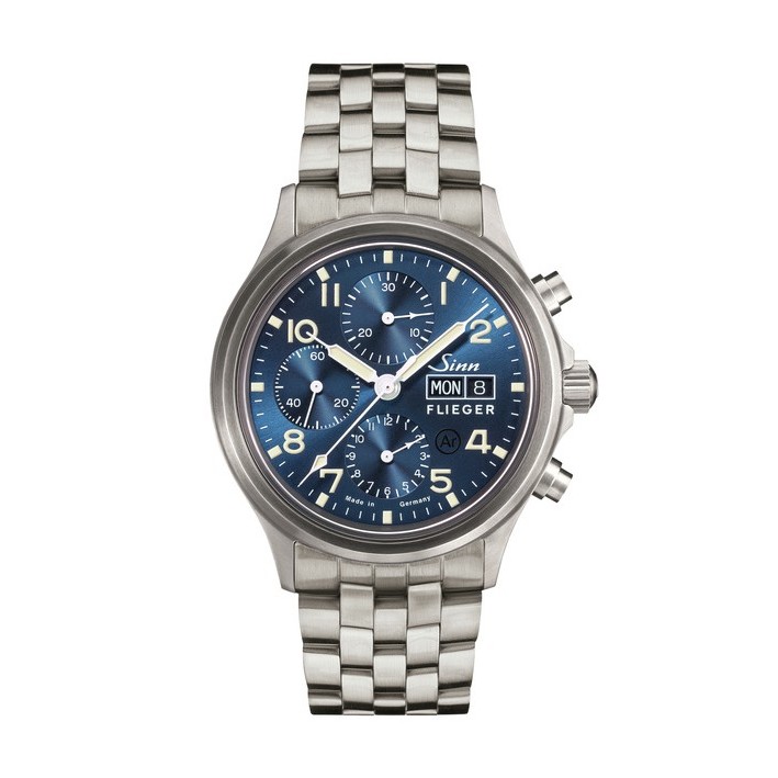 Ganz im Sinne eines klassischen instrumentellen Chronographen gestaltet, überzeugt unser Modell 358 Sa FLIEGER B E durch Klarheit, Sachlichkeit und Eleganz – und mit einem dunkelblauen Zifferblatt, das zusätzlich mit Sonnenschliff veredelt wurde.