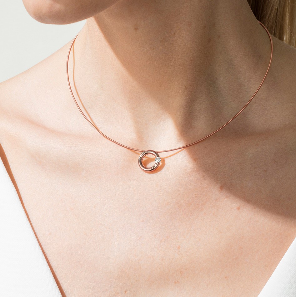 Eine der größten Niessing Design-Ikonen – so klein und zart wie noch nie. Die feinen Proportionen des Niessing Spannring® Anhängers stellen höchste Ansprüche an die handwerklichen Fertigkeiten unserer Goldschmiede und Steinfasser. Der Brillant wird liegend eingespannt. So ist er dem Betrachter zugewandt, frei und doch geborgen: Ein kostbarer, funkelnder Brillant im Augenblick der Spannung.