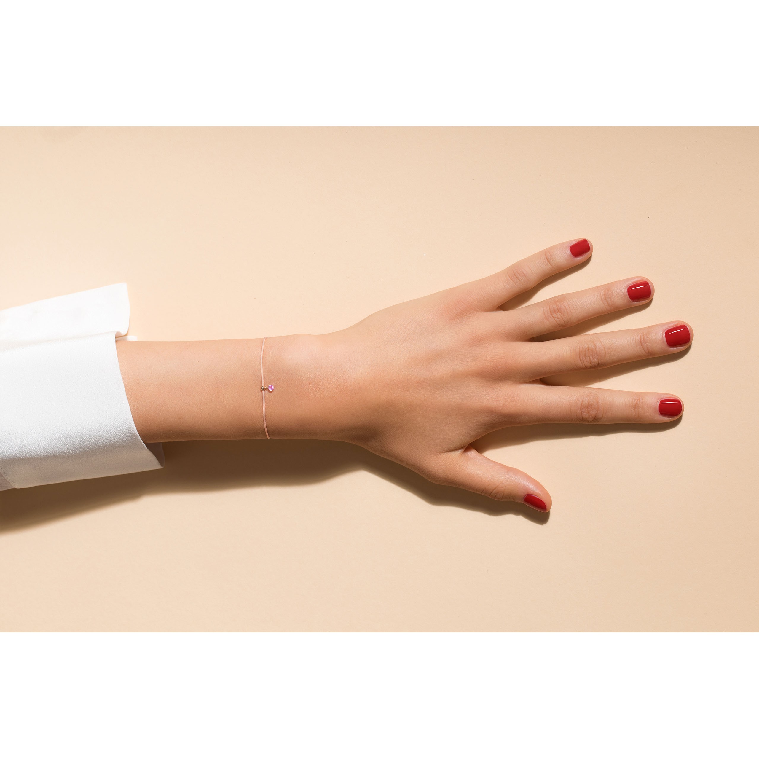 Wie eine zarte Rosenknospe, die das Morgenlicht einfängt, ist dieser rosa Saphir, der an Ihrem Handgelenk vibriert.