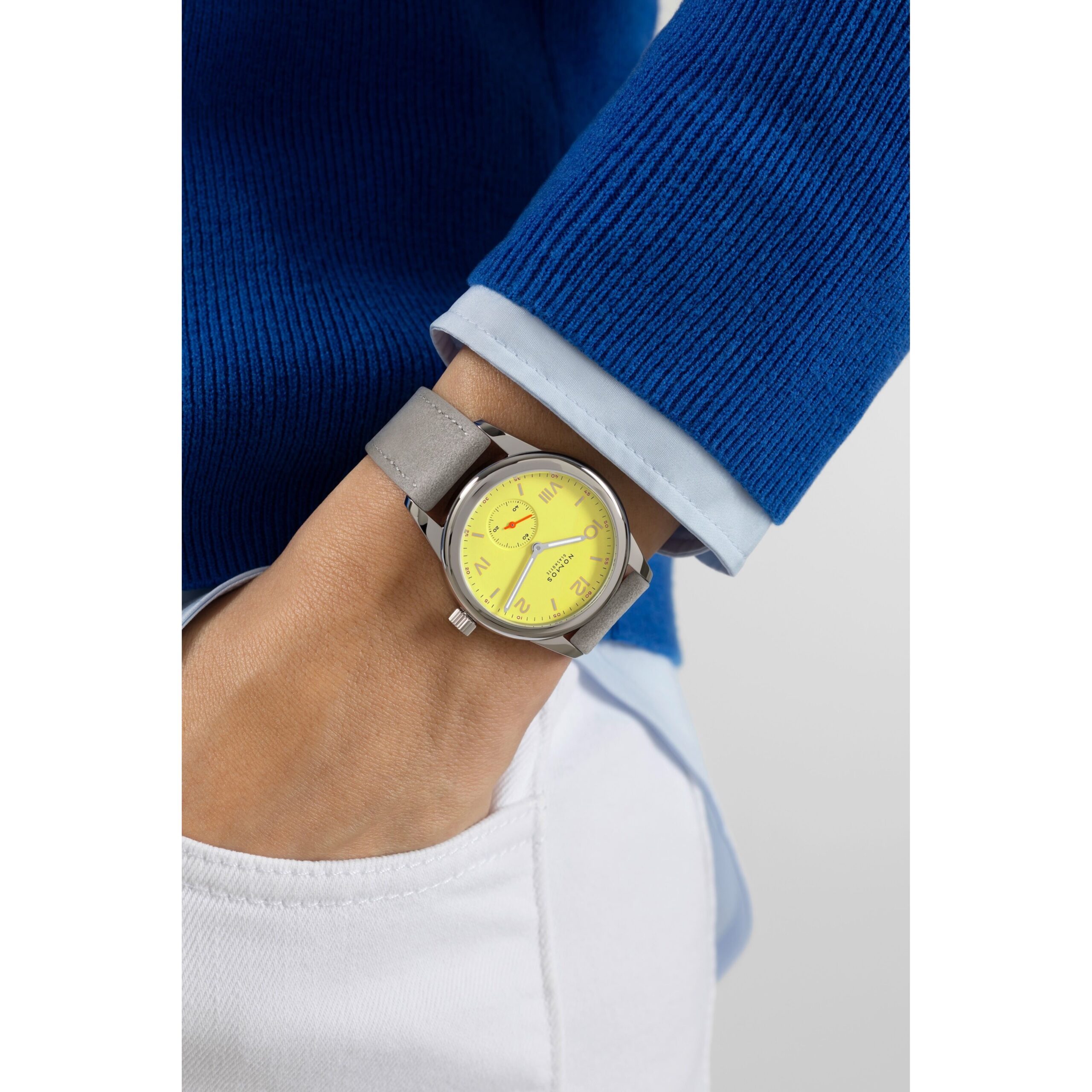 Holen Sie sich den schönsten Stern vom Himmel – und direkt an Ihren Arm! In kraftvoller Klarheit zeigt diese mechanische Uhr, dass Sie jemand sind, der seine Träume leben will. Der arabisch-römische Mix der Stundenziffern sowie der orangefarbene Sekundenzeiger sind typisch für die Modellfamilie Club Campus und gutgelaunte Akzente einer selbstbewussten, robusten Alltagsuhr von Wert.