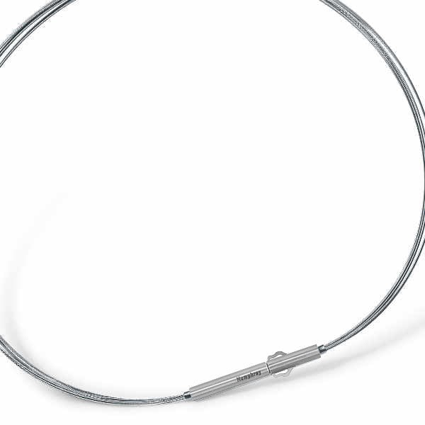 Dieser Halsreif bestehend aus sieben Edelstahlseilen. Das Humphrey Collier ist mit einem einfach zu betätigenden Druckknopf-Verschluss ausgestattet.
