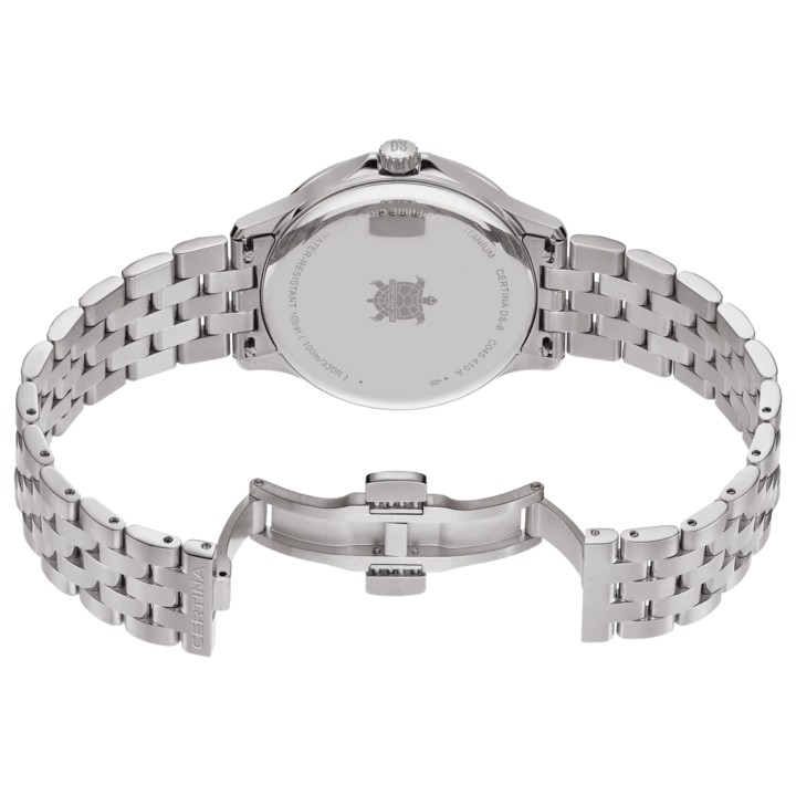 Für anspruchsvolle Herren konzipiert, vereint die Certina DS-8 Gent 40mm Präzision und Raffinesse. Ihr Quarzwerk gewährleistet eine tadellose Genauigkeit und erfüllt die höchsten Uhrmacherei-Standards. Ausgestattet mit einem Datumsfenster, kombiniert sie Diskretion und Funktionalität für optimalen Tragekomfort. Dank ihrer Batterie-Endanzeige (EOL) bietet sie maximale Zuverlässigkeit. Ihr ausgewogenes Design passt zu jeder Gelegenheit, vom Büro bis zu eleganteren Anlässen. Zuverlässig und anspruchsvoll verkörpert sie das Schweizer Uhrmacherhandwerk in einem zeitlosen Stück, ideal für diejenigen, die eine Uhr suchen, die sowohl leistungsstark als auch elegant ist.