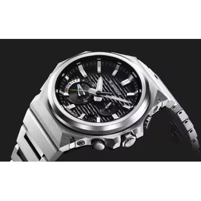 Dies ist ein Zeitmesser, der für einen toughen Einsatz gebaut wurde. Eine Metalllünette schützt vor Stößen, während das Gehäuse aus kohlenstoffverstärktem Kunststoff das Modul schützt. Pufferkomponenten aus Urethan an den Stellen, an denen das Metallband auf das Gehäuse trifft, absorbieren Stöße und verringern die Belastung der Gelenke – das erhöht die Haltbarkeit und sorgt für eine sicherere Verbindung. Die Glasverklebung und das kompakte Moduldesign sorgen für eine schlankere und leichtere Uhr, ohne die Stoßfestigkeit zu beeinträchtigen. All das zusammen ergibt eine anspruchsvolle Kombination aus Komfort, Robustheit und Alltagstauglichkeit.