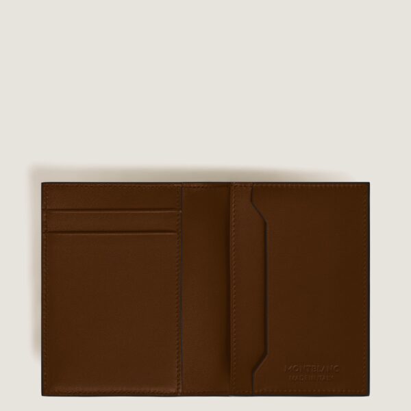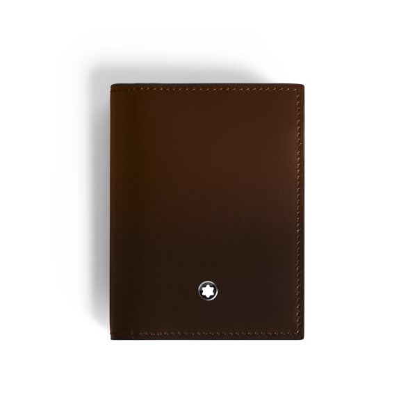 Dieses raffinierte Kartenetui wurde als alltäglicher Begleiter konzipiert und bietet drei Visitenkartenfächer sowie vier Kreditkartenschlitze. Das Accessoire ist in luxuriösem Meisterstück Leder in Braun mit manuell aufgetragenem Sfumato-Effekt erhältlich und verfügt über das Montblanc Emblem auf der Vorderseite.