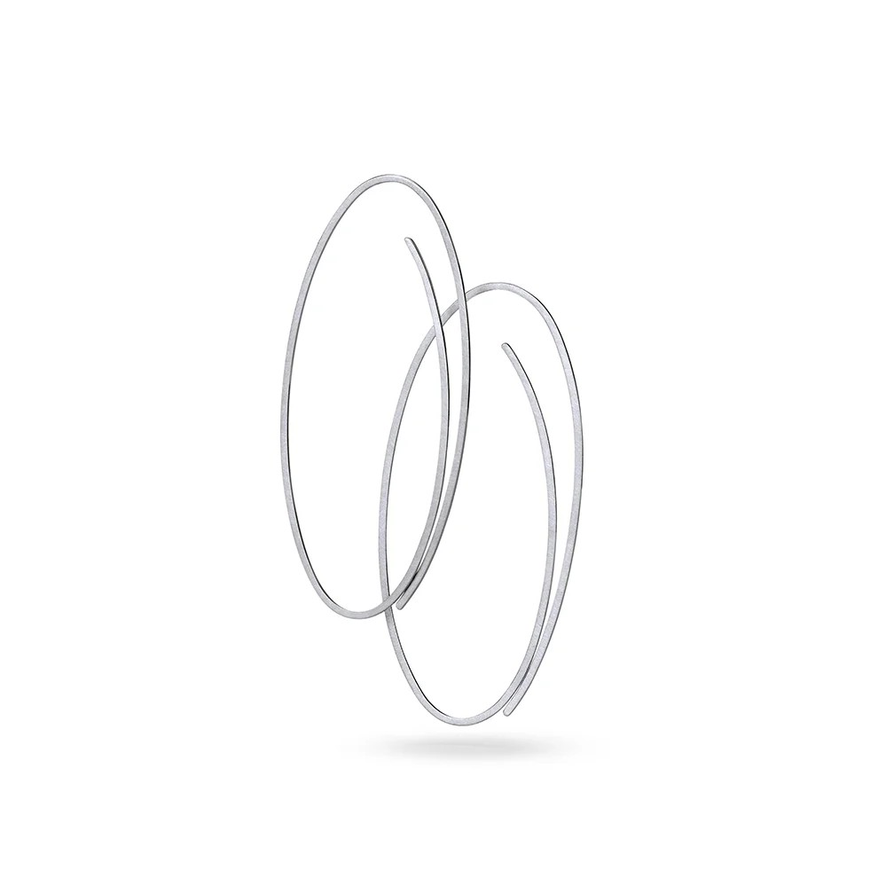 Der filigrane Ohrschmuck beschreibt eine Linie in schwungvoller Bewegung, vergleichbar einer schlichten Bleistiftzeichnung: dynamisch, großzügig, leicht.