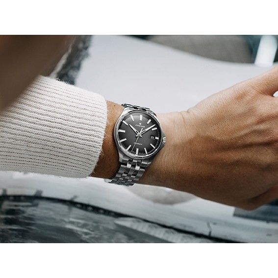 Bei der Arbeit. Beim Sport. In der Freizeit. Das Automatikwerk der Meister S Automatic 36 nutzt selbst die kleinste Bewegung, um Energie zu erzeugen. Das hochfunktionale Werk steckt in einem bemerkenswert kleinen Gehäuse – mit nur 36 mm Lünettendurchmesser. Eine sportlich-moderne Uhr, die auch klassische Gestaltungsmerkmale in sich trägt.