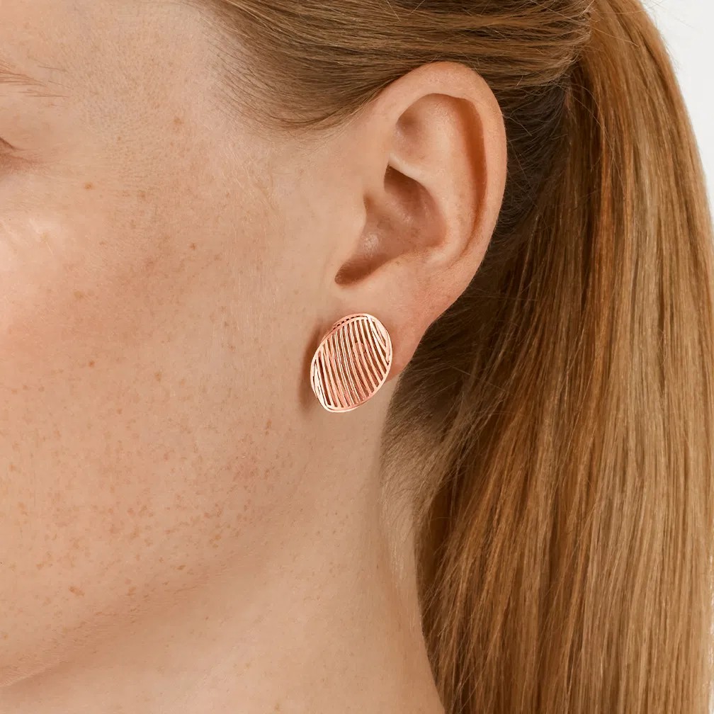 Zwei Ovale mit hauchzarten Lamellen werden kunstvoll zusammengesteckt und bilden ein federleichtes Schmuckobjekt. Der Ohrschmuck nimmt das Licht mit all seinen feinen Strukturen auf und spiegelt es: Die Luft in seinem Inneren scheint zu flirren, die Niessing Colors erstrahlen in nie gesehener Intensität. Mirage ist eine Vision von Schwerelosigkeit in Gold und Platinum: architektonisch, skulptural – und jetzt so leicht und zart wie nie zuvor.
