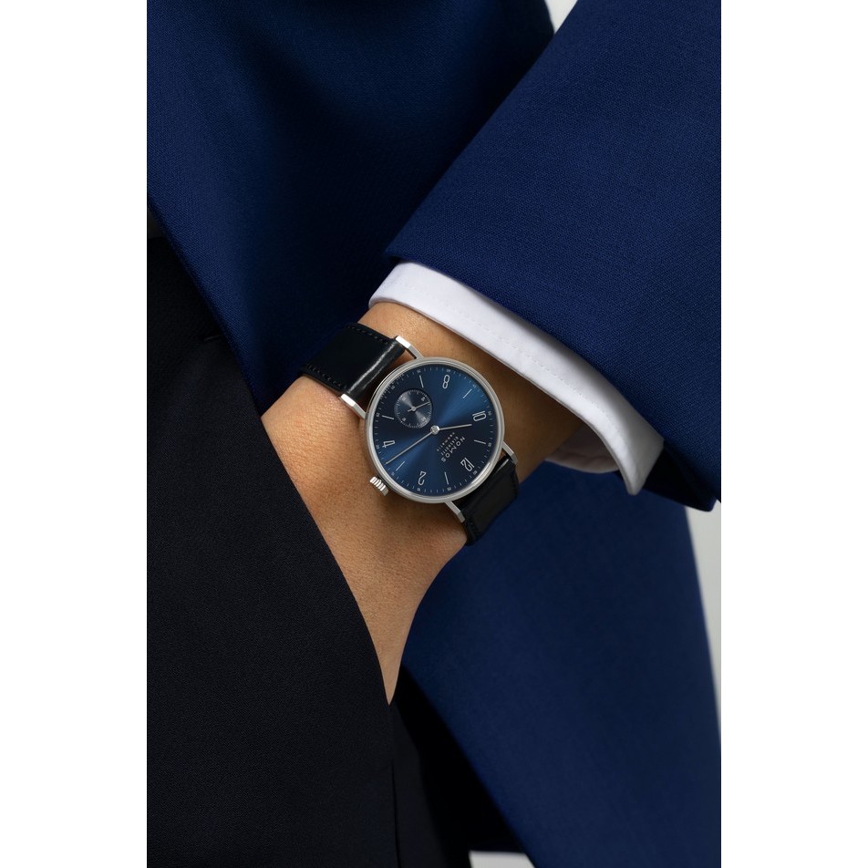 Diese Automatikuhr ist der Inbegriff einer Dresswatch. In der Tiefe des blauen Zifferblatts mit Strahlenschliff schimmert es golden, was der minimalistischen Eleganz der Ikone Tangente etwas zusätzlich Souveränes verleiht. Die Lust am Außergewöhnlichen findet hier ihren Ausdruck, die Feier der perfekten Verbindung von Leistung und Glanz. Im Inneren des hochglanzpolierten Edelstahlgehäuses arbeitet das innovativ niedrig konstruierte, hochpräzise Manufakturkaliber DUW 3001 – Tangente neomatik blaugold bietet Glashütter Uhrmacherkunst im vielfach preisgekrönten Design.