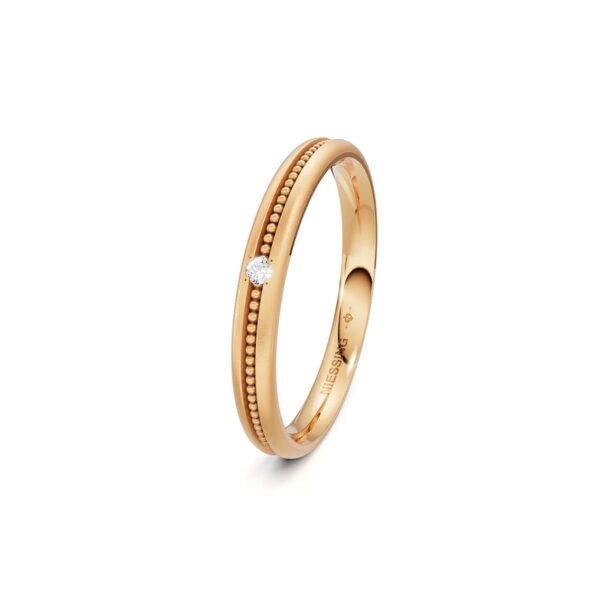 Die neuen Niessing Art Déco mittig Trauringe und der Verlobungsring verkörpern eine zeitlose Verbindung mit einem Hauch Nostalgie, inspiriert von der Art-Déco-Bewegung. Das pure Design wird von einer feinen Millgriff-Linie durchzogen, die die zentrale Rolle der Liebe symbolisiert. Ein meisterhaft gestalteter Ring, der die glitzernde Reise durch Höhen und Tiefen der Liebe einfängt und in jeder Facette den Zauber vergangener Tage in die Gegenwart trägt.
