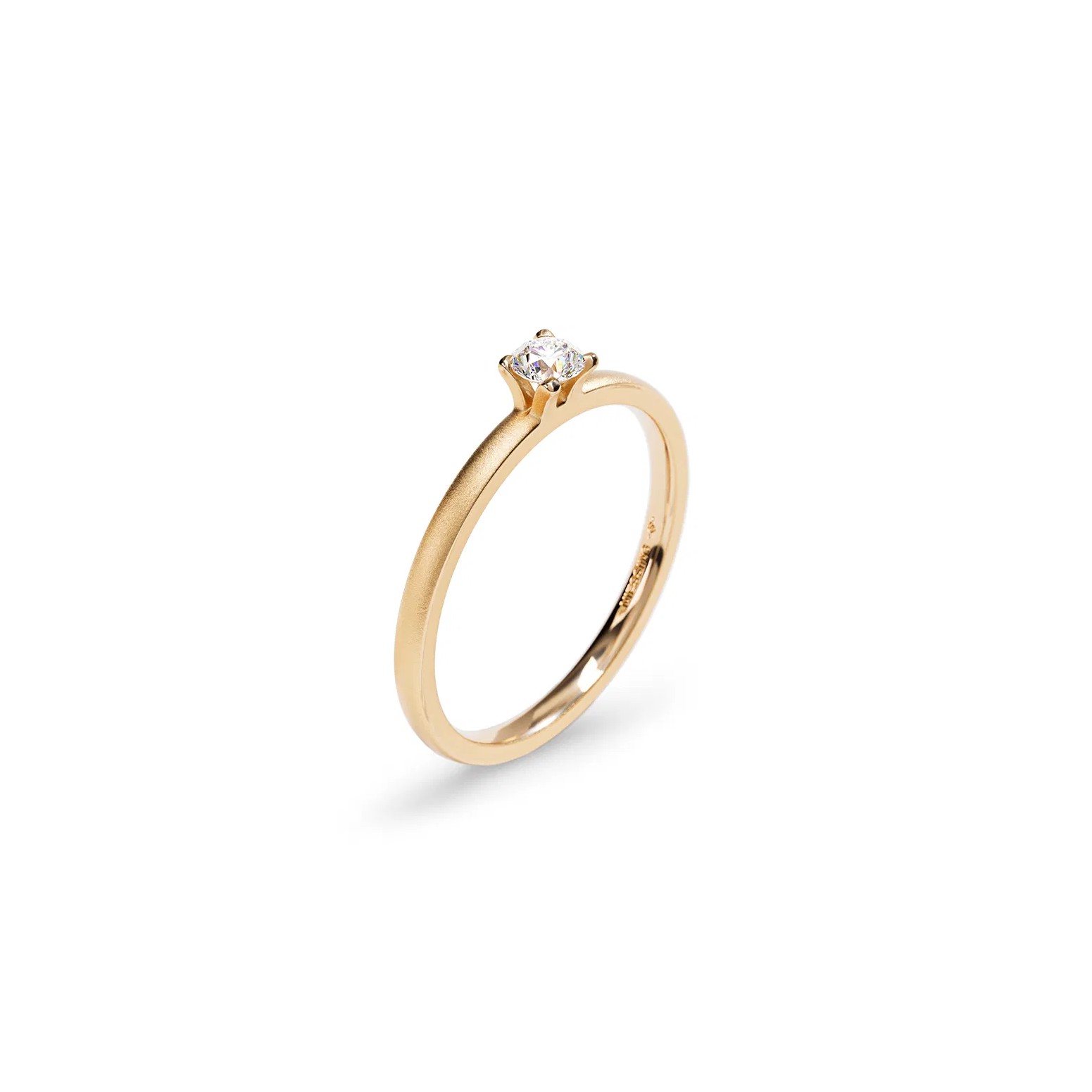 Niessing Amatis Fine ist so zierlich wie eben möglich gearbeitet. Die vier Krappen sind besonders fein, wirken modern und beinahe sportlich. Sie halten den Brillanten sicher fest und lassen ihn optisch größer wirken. Der Ring ist schmaler als je zuvor und schmiegt sich perfekt an seinen Begleiter, den Trauring. Der funkelnde Brillant schwebt hoch über der Hand. Ein einzigartiges Ringdesign für das größte Versprechen: We are united in love – forever and ever.